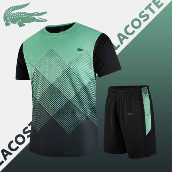 This Lacoste – ProGrid Dynamic Set features a stylish geometric gradient pattern that reflects energy and motion. Strategically placed details enhance its modern look, while moisture-control and ventilation technology keep you cool under pressure. It’s athletic wear that blends performance with flawless style.